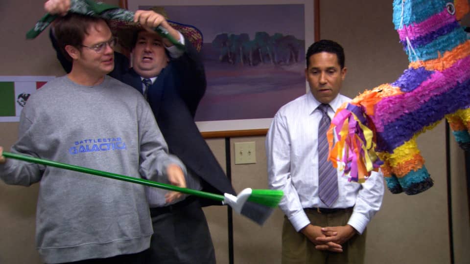 Персонажи: Майкл Скотт, Дуайт Шрут, Джим Халперт, Пэм Бисли, Райан Ховард, Энди Бернард, Стэнли Хадсон, Кевин Малоун, Мередит Палмер, Анджела Мартин, Оскар Мартинес, Филлис Вэнс.