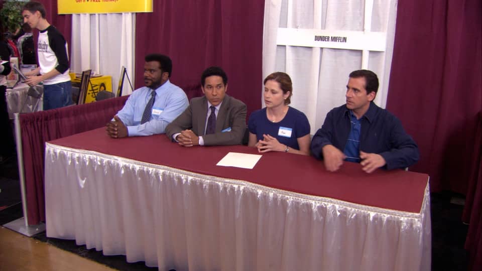 Персонажи: Майкл Скотт, Дуайт Шрут, Джим Халперт, Пэм Бисли, Райан Ховард, Энди Бернард, Стэнли Хадсон, Кевин Малоун, Мередит Палмер, Анджела Мартин, Оскар Мартинес, Филлис Вэнс.