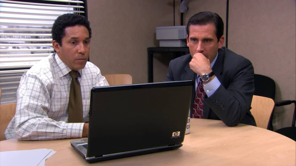 Персонажи: Майкл Скотт, Дуайт Шрут, Джим Халперт, Пэм Бисли, Райан Ховард, Энди Бернард, Стэнли Хадсон, Кевин Малоун, Мередит Палмер, Анджела Мартин, Оскар Мартинес, Филлис Вэнс.
