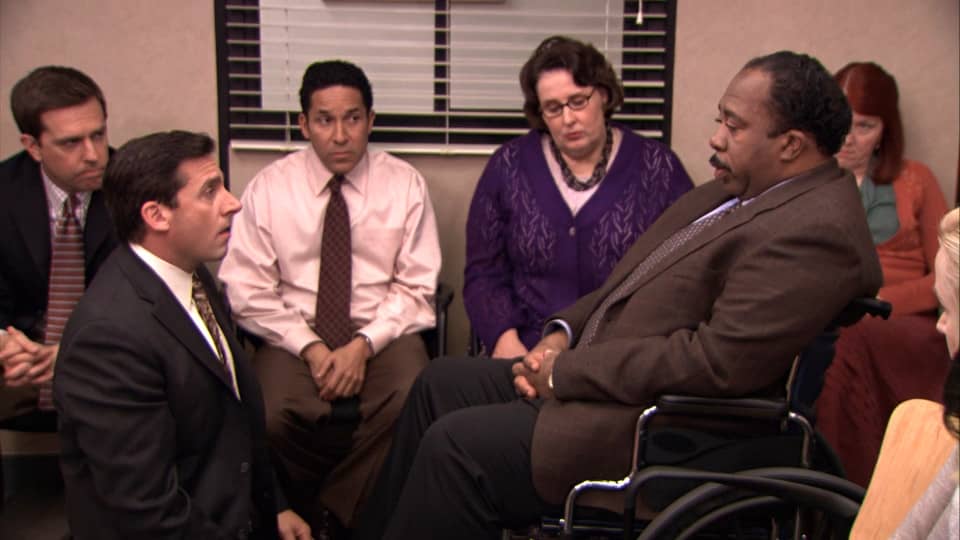 Персонажи: Майкл Скотт, Дуайт Шрут, Джим Халперт, Пэм Бисли, Райан Ховард, Энди Бернард, Стэнли Хадсон, Кевин Малоун, Мередит Палмер, Анджела Мартин, Оскар Мартинес, Филлис Вэнс.
