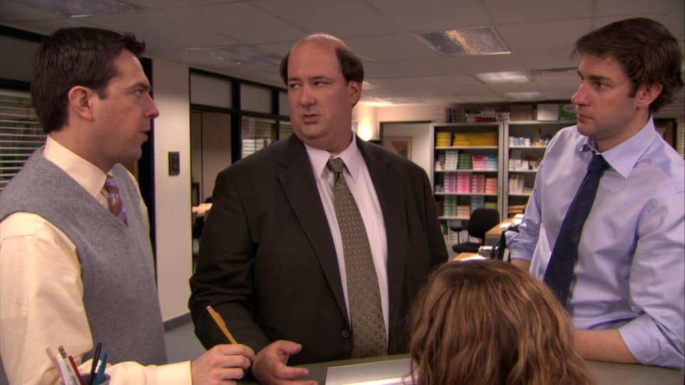 Персонажи: Майкл Скотт, Дуайт Шрут, Джим Халперт, Пэм Бисли, Райан Ховард, Энди Бернард, Стэнли Хадсон, Кевин Малоун, Мередит Палмер, Анджела Мартин, Оскар Мартинес, Филлис Вэнс.