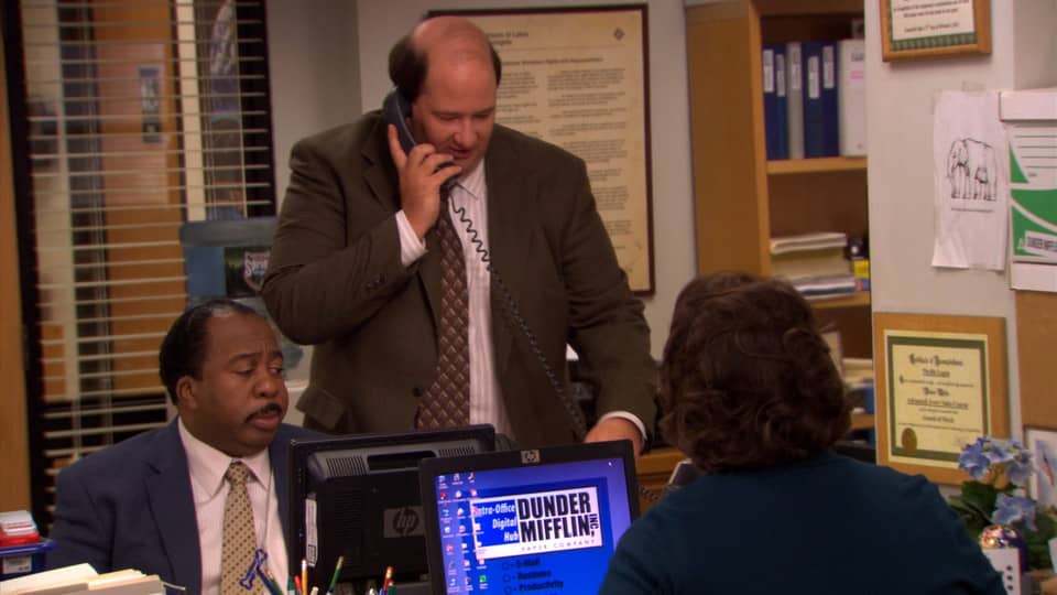 Персонажи: Майкл Скотт, Дуайт Шрут, Джим Халперт, Пэм Бисли, Райан Ховард, Энди Бернард, Стэнли Хадсон, Кевин Малоун, Мередит Палмер, Анджела Мартин, Оскар Мартинес, Филлис Вэнс.