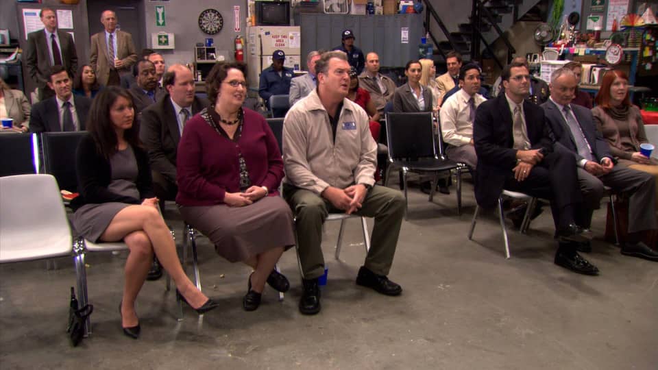 Персонажи: Майкл Скотт, Дуайт Шрут, Джим Халперт, Пэм Бисли, Райан Ховард, Энди Бернард, Стэнли Хадсон, Кевин Малоун, Мередит Палмер, Анджела Мартин, Оскар Мартинес, Филлис Вэнс.
