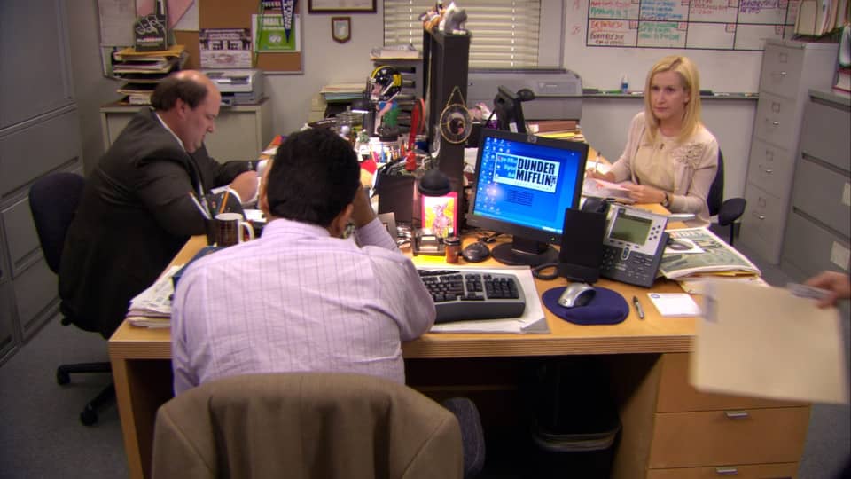 Персонажи: Майкл Скотт, Дуайт Шрут, Джим Халперт, Пэм Бисли, Райан Ховард, Энди Бернард, Стэнли Хадсон, Кевин Малоун, Мередит Палмер, Анджела Мартин, Оскар Мартинес, Филлис Вэнс.