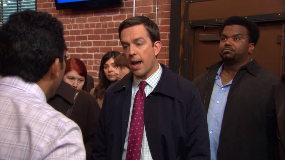 Персонажи: Майкл Скотт, Дуайт Шрут, Джим Халперт, Пэм Бисли, Райан Ховард, Энди Бернард, Стэнли Хадсон, Кевин Малоун, Мередит Палмер, Анджела Мартин, Оскар Мартинес, Филлис Вэнс.